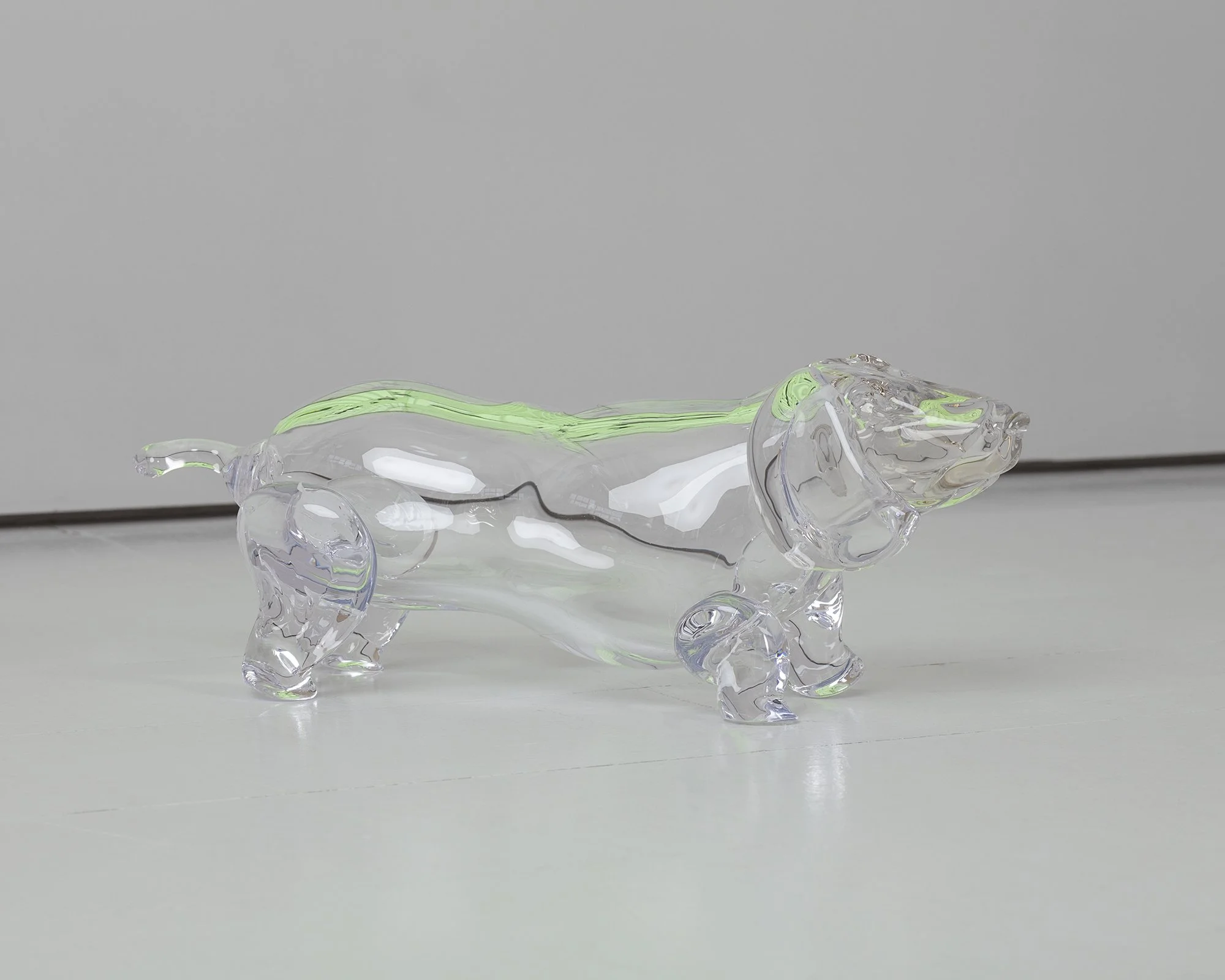 Bespoke blown hollow body glass sausage dog. 2021. 18 X 13 X 46 cm.